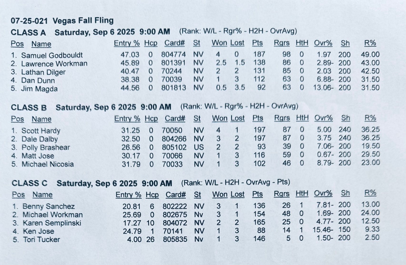 Class A & B & C results
